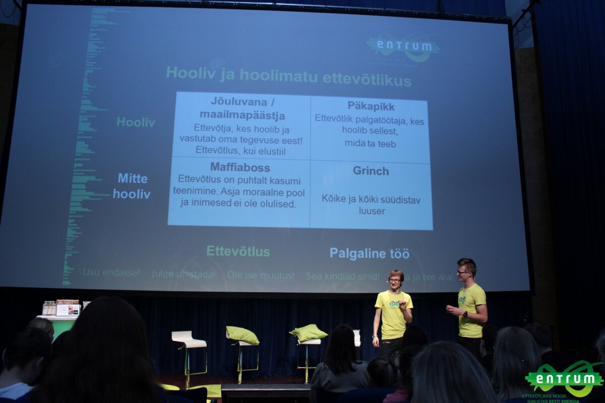 ENTRUM Virumaa inkubatsiooniprogramm on lõpusirgel ning 28. veebruaril toimus Jõhvi Kontserdimajas viimane ENTRUM Virumaa õppesessioon. Põhifookuses olid küsimused, kes on ikkagi ettevõtlik inimene ning kui oluline on ettevõtliku inimese jaoks olla vastutustundlik ning vastutada enda ja teiste eest. Noori käisid inspireerimas ENTRUM Virumaa patroon Ülane Vilumets, ENTRUM Ida-Virumaa hooaja vilistlane Tatjana Punger ning ENTRUM Põhja-Eesti vilistlased start-up’ist E-muusikakool Markus Lember ja Karel Nappus. Superfinaalis peetavaks pitšikõneks aitasid valmistuda Väitluskoolitusest Anna Karolin ja Sandra Sillaots.